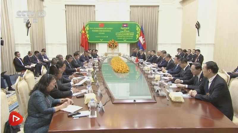 4月17日晚,国家主席习近平同柬埔寨首相洪玛奈在金边和平大厦举行会谈。两国领导人一致同意携手构建新时代全天候中柬命运共同体,宣布2025年为“中柬旅游年”。