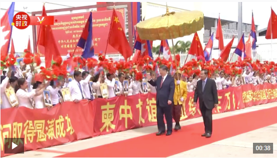 前往机场途中,柬埔寨数万名民众、在柬中资企业人员、留学生和华侨华人聚集在道路两旁,挥舞中柬两国国旗,手持“中柬友谊万古长青”等红色横幅,热烈祝贺习近平访问柬埔寨取得圆满成功。