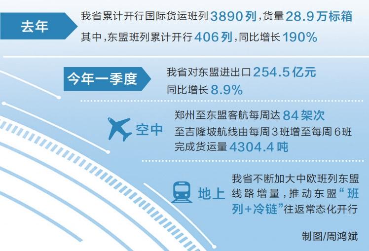 陆上,一趟趟国际货运班列风驰电掣;空中,一架架全货机来往穿梭,共同推动河南与东盟国家的深化合作。