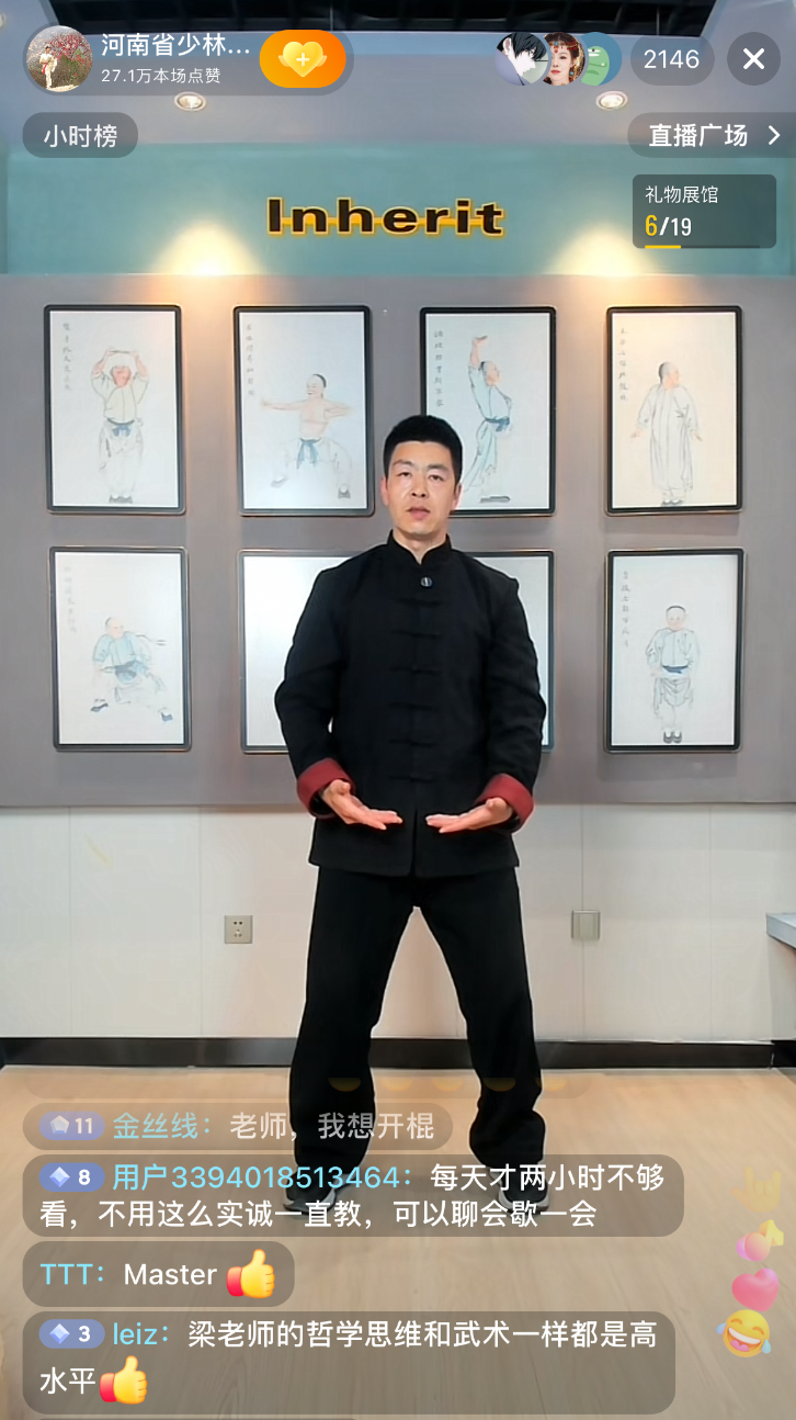 “溅”在梁小龙身上的流量,令他一周涨粉十万。与同事讨论过后,他乘势而上的方式是:在下班之后开直播,一招一式教网友少林武术操。