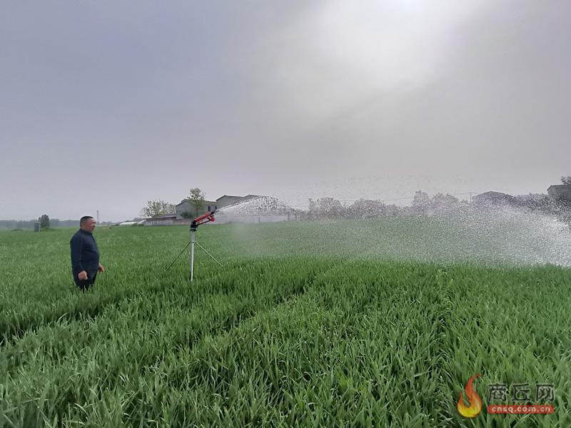 4月20日清晨,夏邑县曹集乡曹东行政村许庄村的董敬领来到自家责任田,熟练地架设喷灌泵进行浇水。