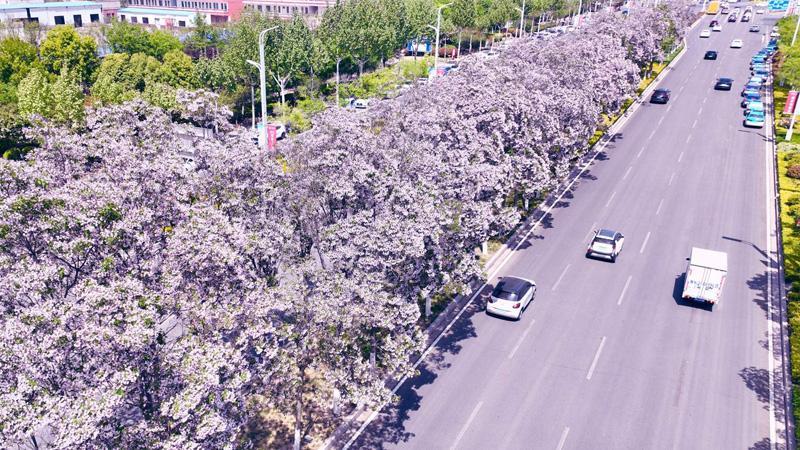 星林路两旁楸树花开
