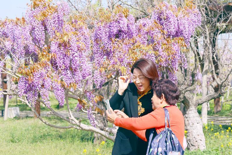 两河弯弯紫藤园是打卡好去处