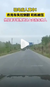 4月19日,河南驻马店,一辆满载草料的农用四轮车行驶中突然失控,侧翻进路边水沟司机被压,情况危急!路过车辆司机及同行人员立即停车展开救援,三人与随后赶到的热心群众齐心协力,成功将侧翻车辆抬起救出被困司机!