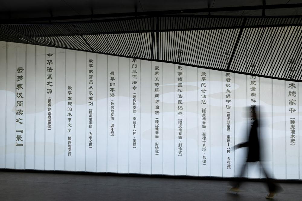 2024年4月15日,观众在湖北云梦县博物馆睡虎地秦简展厅参观。睡虎地秦简被发现于1975年,是中国考古史上首次发现的秦简。