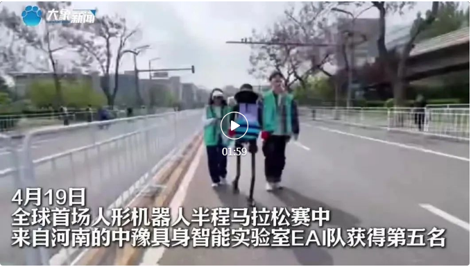 上周六,在北京举行的人形机器人半程马拉松赛上,代表河南出征的中豫具身智能实验室EAI战队的机器人,用全程零电池更换的硬核实力登顶“续航之王”,最终凭借4小时50分33秒的优异成绩斩获赛事第五名。