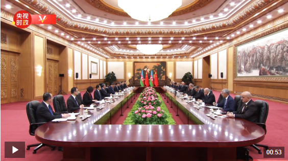 4月23日上午,国家主席习近平在北京人民大会堂同来华进行国事访问的阿塞拜疆总统阿利耶夫举行会谈。