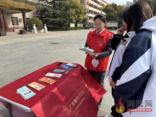 广发银行商丘分行工作人员向学生普及反假币知识 本报融媒体记者 霍天艳 摄