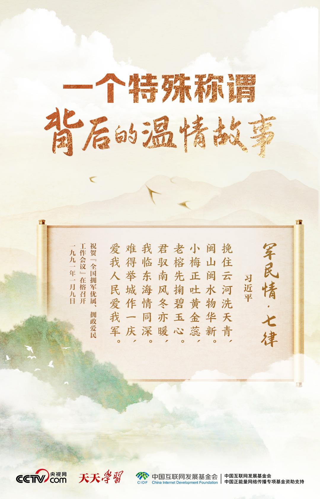 当年在福州工作时,习近平曾赋诗《军民情·七律》,表达了他对军队的深情:“君驭南风冬亦暖,我临东海情同深。难得举城作一庆,爱我人民爱我军。”