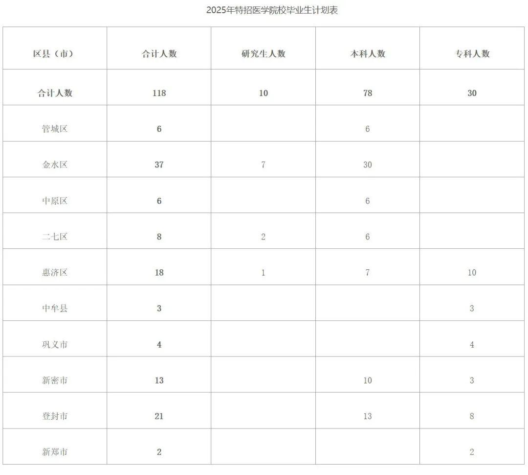 郑州航空港经济综合实验区2025年特招医学院校毕业生岗位计划表
