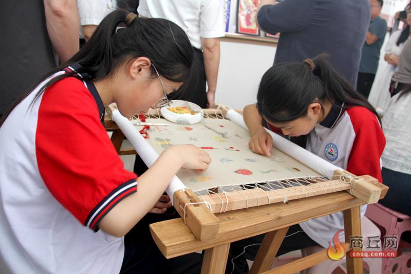 学生亲身感受刺绣艺术的魅力。