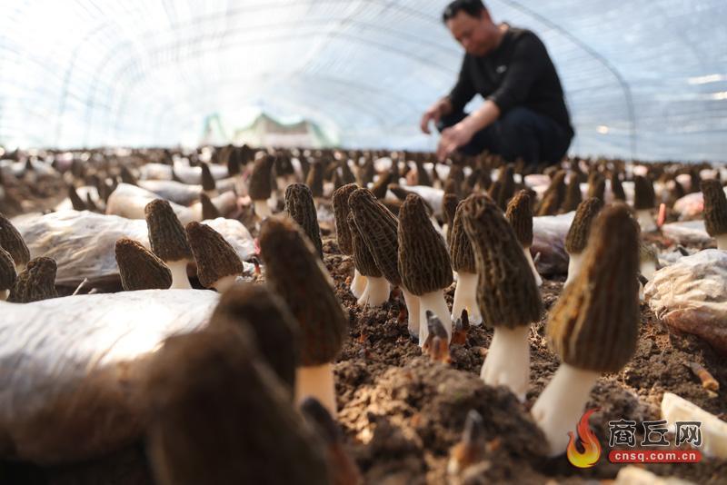 3月7日,社员在查看羊肚菌长势。随着气温的回暖,在睢阳区娄店乡大刘村瑞丰食用菌种植专业合作社的大棚里,一个个羊肚菌破土而出,迎来成熟期。小小菌菇为当地村民撑起了“致富伞”,铺就了通往乡村振兴的产业路。