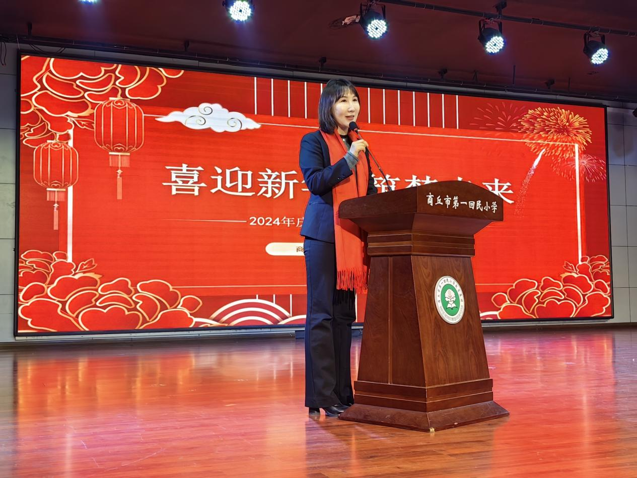 集团总校校长谢晓燕致新年贺词。她祝福全体教师新年快乐并希望全体教师在新的一年继续做躬耕教坛的深耕者,未来教育的先行者,用激情和智慧,共同谱写第一回民小学崭新的篇章。