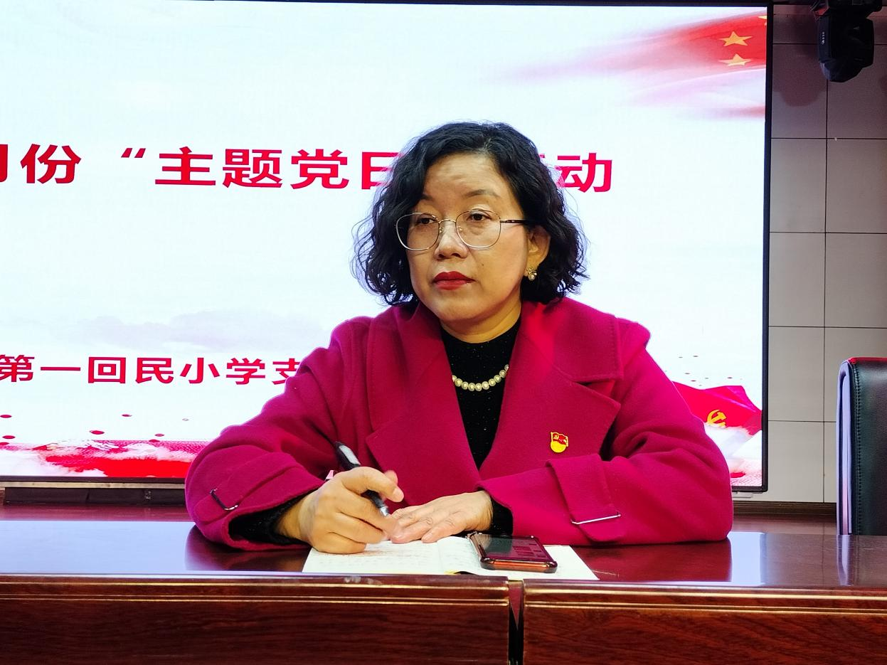 活动伊始,副校长王敏带领大家重温入党誓词。面对庄严的党旗,全体党员同志郑重地高举右手,面向鲜红的党旗高声宣誓,坚定的誓言表达了第一回民小学全体共产党员永葆教育初心和使命,为共产主义奋斗终身的坚定信念和决心。