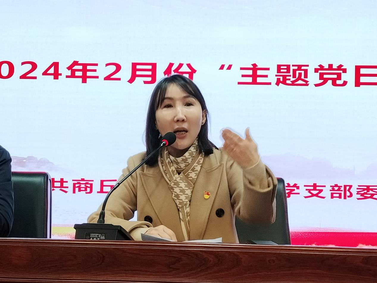 最后,校长谢晓燕表示,通过主题党日活动,全体党员教师要真正做到党的创新理论入脑入心,把理论落实到学校各项具体工作中,发挥党员的示范引领作用,将党员身份亮起来,让党员称号响起来,把党员形象树起来,在本职岗位上发挥一名党员教师的先锋模范作用,践行立德树人初心,牢记“为党育人、为国育才”使命,凝心聚力,砥砺奋进,为梁园教育发展贡献力量。