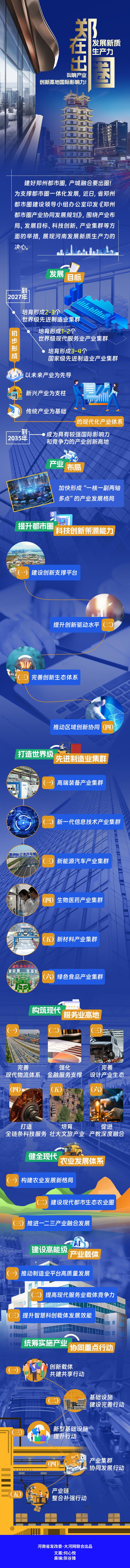 编者按:今年政府工作报告强调,要注重以城市群、都市圈为依托,促进大中小城市协调发展。随着《郑州都市圈发展规划》的出台,郑州都市圈配套措施逐步完善。日前,郑州都市圈在交通、产业、公共服务、能源、水利、生态六个领域的专项规划出台。4月12日起,河南省发展和改革委员会联合大河网推出“郑在出圈”系列报道,生动呈现郑州都市圈在提升区域竞争力、优化资源配置、改善民生福祉等方面的新蓝图,彰显河南融入国家区域协调发展大局的切实举措。 大河网讯 汽车生产车间内,工业机器人灵活地控制着机械手,经过冲压、焊装、涂装、总装、测试等环节,一辆辆崭新的越野车顺利驶下生产线……在郑州航空港区汽车城内,一派产业高质量发展的蓬勃景象。近年来,郑州航空港区以产业为引领,致力于形成新质生产力,聚焦“十大产业”的高质量发展。 经济要提质,产业必出圈,实现产业高质量发展,郑州都市圈绘就了全面而清晰的“路线图”。近日,河南省郑州都市圈建设领导小组办公室印发《郑州都市圈产业协同发展规划》(以下简称《规划》)。 培育形成2~3个世界级先进制造业集群 2035年成为具有较强国际影响力的产业创新高地 《规划》明确,到2027年,在高端装备、绿色食品、新材料等优势领域培育形成2~3个世界级先进制造业集群。推动都市圈形成“一核一副两轴多点”的产业发展格局,并初步形成“以未来产业为先导、新兴产业为支柱、传统产业为基础”的现代化产业体系。 到2035年,郑州都市圈在国内外产业分工和价值链中的地位大幅跃升,培育形成一批创新引领、要素富集、空间集约的战略性新兴产业增长引擎,形成国内领先的都市圈协同创新共同体,重点产业领域竞争力国际领先,建成科技和制度创新双轮驱动、产业和城市一体化发展的现代产业带,成为具有较强国际影响力和竞争力的产业创新高地。 实施五大重点行动 产业协同发力推进 为实现产业协同,《规划》聚焦五项重点行动,其中明确,实施创新载体共建共享行动。推动嵩山、神农种业、黄河等省实验室高质量运行,依托省内优势单位和优势学科领域,力争创建一批全国重点实验室。推动郑州大学完成综合性大学一流学科布局和研究型大学治理体系建设、河南大学完成生物学一流学科体系布局。 开展基础设施建设完善行动。加快建设郑州国际性、洛阳全国性综合交通枢纽,推进开封、许昌、新乡、焦作、平顶山、漯河、济源区域性综合交通枢纽建设,构建都市圈一体化综合交通枢纽体系。建设轨道上的都市圈,完善郑州都市圈多层次轨道交通网络,做好与城市轨道交通衔接协调,打造多种轨道交通方式有机衔接的1小时通勤圈。 新型基础设施提升行动。增强IPv6网络互联互通能力,加快实现基础网络和应用基础设施IPv6全覆盖,创建郑州市基于IPv6的下一代互联网示范城市。推进郑州、许昌、洛阳等人工智能计算中心建设,构建中原人工智能算力网。实施国家超算互联网核心节点建设工程,打造形成一批标志性创新成果和典型应用。超前部署量子通信网、卫星互联网、第六代移动通信(6G)等未来网络。 推进产业集群协同发展行动。实施重点企业培育扶持工程,做强做优大企业大集团,精准引进龙头企业,定向扶持本土行业领军企业。此外,《规划》提到,要加强郑州都市圈产业协同发展重大项目库建设,设立专门项目服务机构,提高项目成熟度,抓好投产项目达效、开工项目投产、签约项目开工,高度重视项目前期工作。 产业链整合补强行动。强化中小城市服务配套和产业承接能力,推动形成“总部+基地”“总装+配套”“研发+产业化”“技术研发+中试转化+生产制造”等产业协作模式。在有条件的地方采取区中园、委托管理等模式共建一批科技合作园区。提升郑州—卢森堡“空中丝绸之路”品牌优势,深化郑州新郑国际机场航空电子货运和空空中转试点工作,探索推进“河南—芬兰—北欧”“河南—柬埔寨—东盟”等交流合作。 此外,《规划》还提出,要将高端装备产业集群、新一代信息技术产业集群、新能源汽车产业集群、生物医药产业集群、新材料产业集群和绿色食品产业集群打造为世界级先进制造业集群。(何心悦) 更多规划详情,一图读懂——