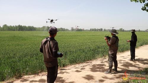 当前,梁园区45.2万亩小麦陆续进入灌浆期(上图),这是小麦产量形成的关键期,也是各类病虫害易发多发、防治的关键期。为做好小麦中后期重大病虫害防治工作,该区各乡镇积极进行大规模无人机飞防,开展小麦“一喷三防”作业,做到一喷多效、病虫兼治,保障夏粮丰产丰收。左图为农技人员在梁园区谢集镇尚楼村开展“一喷三防”作业。