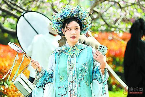身穿“新中式”服装的游客在商丘古城拍摄留念 本报融媒体记者 魏文慧 摄