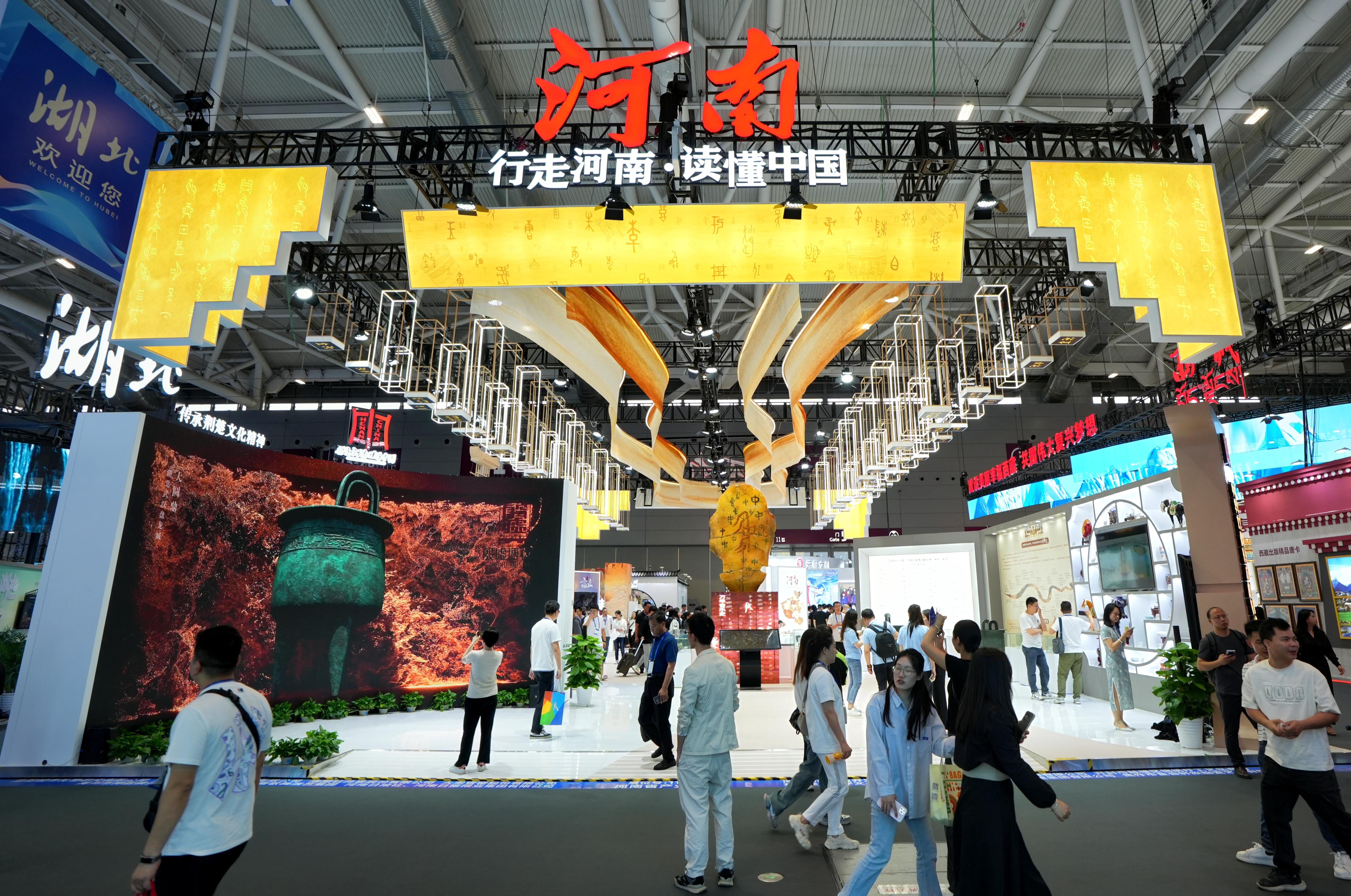 河南作为文化大省、文物大省,在五千多年的中国文明历史进程中具有不可替代的独特地位。在深圳文博会二十年的发展历程中,河南展馆已连续二十年参会。今年,以“行走河南·读懂中国”为主题的河南展馆再次亮相盛会,全面展现我省文化产业新业态、新亮点、新成果,让历史可触、文化可感、创新可期。