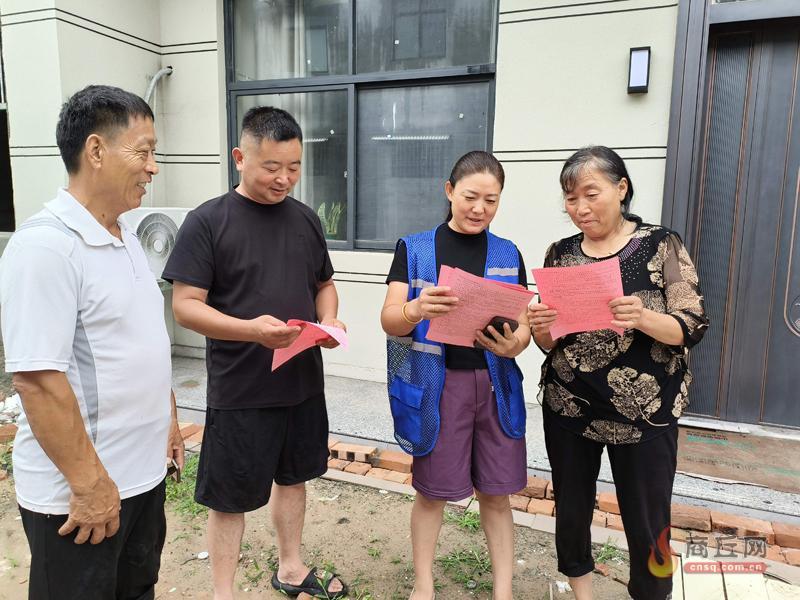 7月17日,民权县花园乡陈庄村网格员向群众宣传防汛减灾常识。连日来,该乡严格落实防汛责任,加大宣传引导力度,增强群众安全意识。