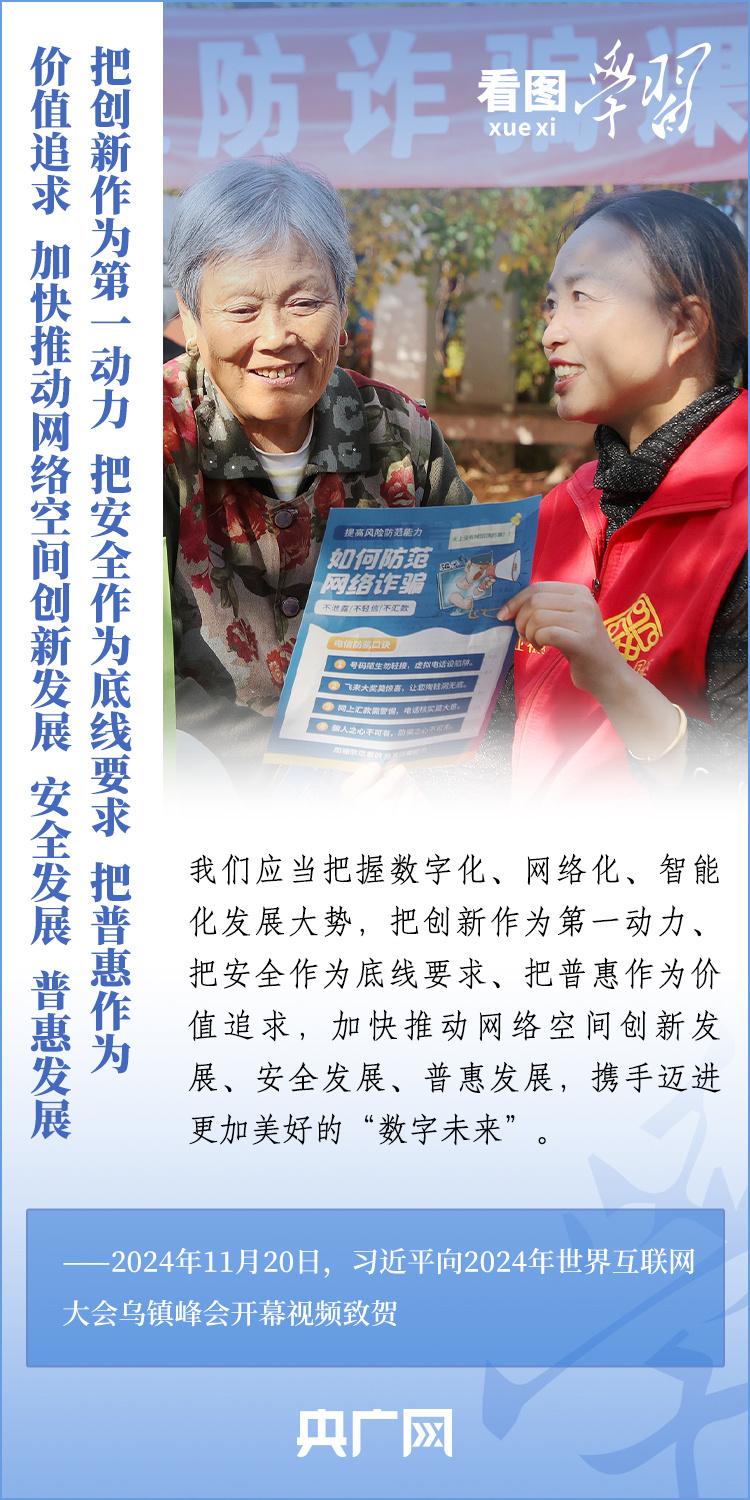 11月20日,国家主席习近平向2024年世界互联网大会乌镇峰会开幕视频致贺指出,要加快推动网络空间创新发展、安全发展、普惠发展,携手迈进更加美好的“数字未来”。