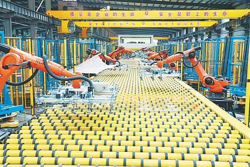 河南省中联玻璃有限责任公司智能化机械臂正在抓取玻璃。