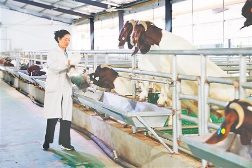 宁陵县豫东牧业开发有限公司工人正在饲喂种羊。